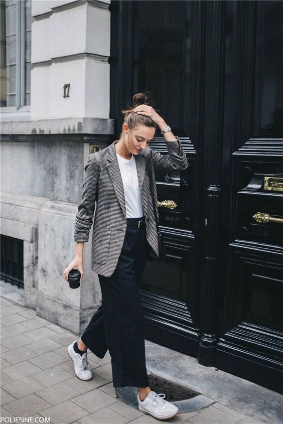 4. 운동화와 어깨에 티를 걸쳐 포인트를 주었네요