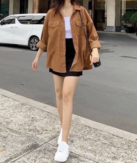 떠오르는 스웨이드 재질 셔츠를 아우터로