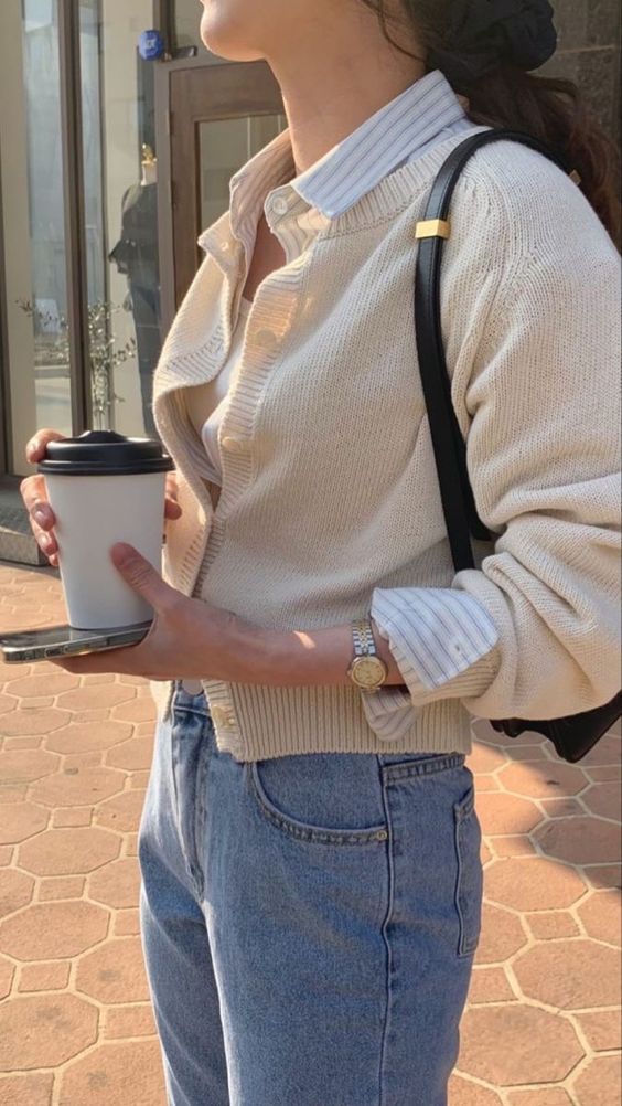 2. 흰색 가디건 코디